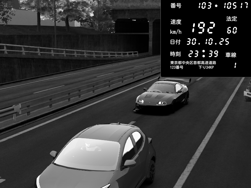 | 2025/10/30 23:39 | C1内回り 銀座 | 192 / 60 km/h | Toyota Supra MKIV Time Attack | CAPTURE |