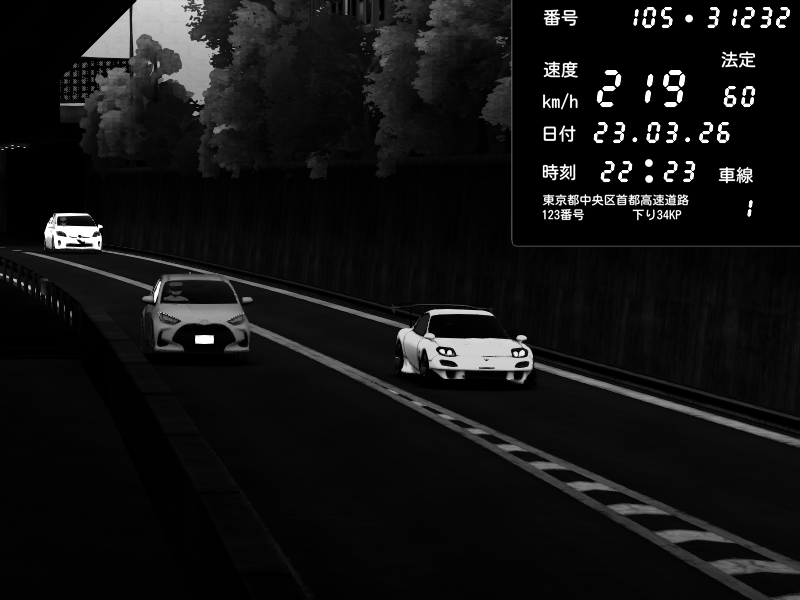 | 2026/03/23 22:23 | C1外回り 新富町 | 105 / 60 km/h | Mazda RX-7 FD3S RE Amemiya | CAPTURE |