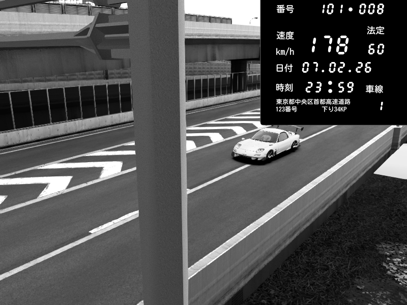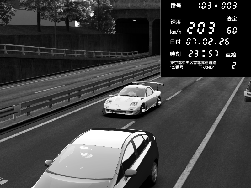 | 2026/02/07 23:59 | C1内回り 竹橋JCT | 178 / 60 km/h | Mazda RX-7 FD3S RE Amemiya | CAPTURE |