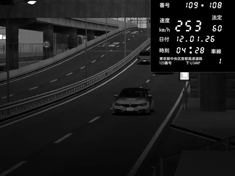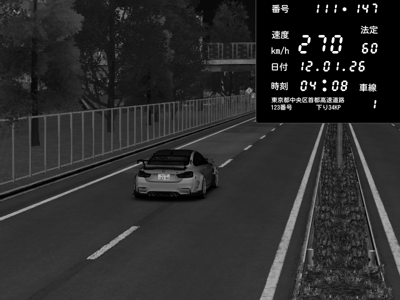 | 2026/01/12 03:55 | C1内回り 銀座 | 200 / 60 km/h | BMW M4 crash.Sp Varis Widebody | CAPTURE |