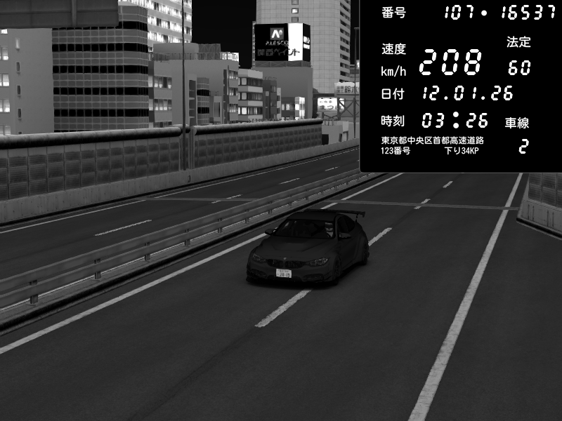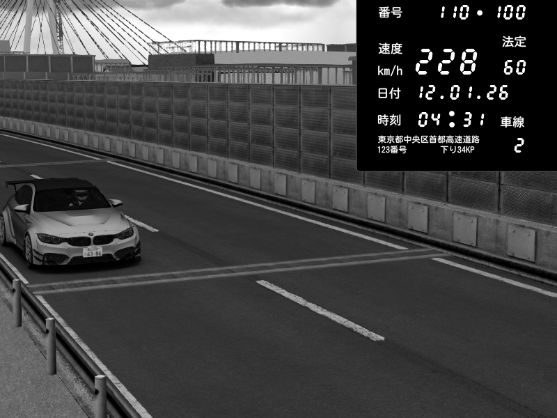| 2026/01/12 04:31 | K1上り 羽田 | 228 / 60 km/h | BMW M4 crash.Sp Varis Widebody | CAPTURE |