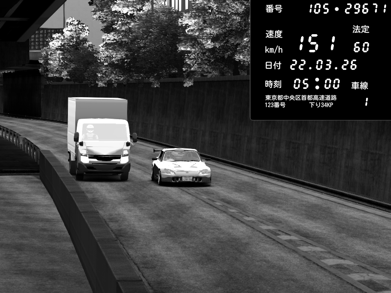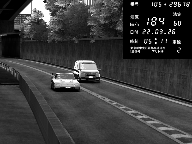 | 2026/03/22 05:11 | C1外回り 新富町 | 136 / 60 km/h | Honda S2000 (AP2 - Legendary) | CAPTURE |