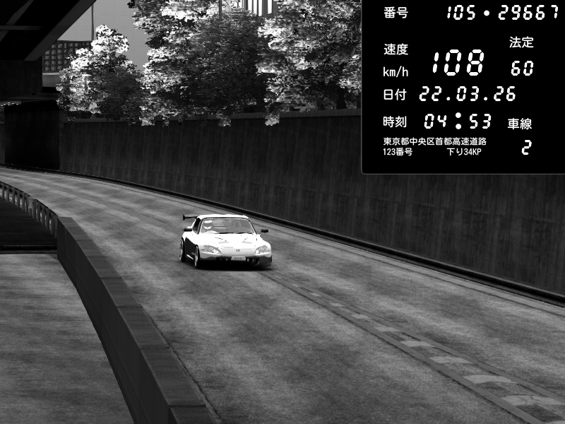 | 2026/03/22 04:53 | C1外回り 京橋 | 108 / 60 km/h | Honda S2000 (AP2 - Legendary) | CAPTURE |