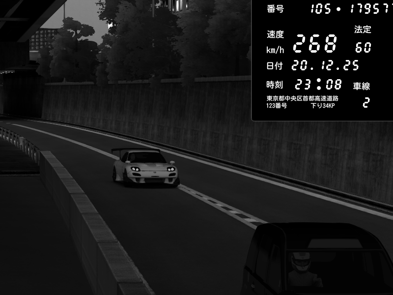 | 2025/12/20 23:08 | C1外回り 新富町 | 106 / 60 km/h | Mazda RX-7 FD3S RE Amemiya | CAPTURE |