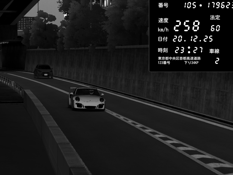 | 2025/12/20 23:27 | C1外回り 京橋 | 258 / 60 km/h | Porsche 911 GT3 RS | CAPTURE |