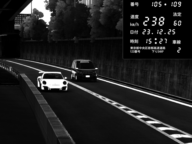 | 2025/12/23 15:27 | C1外回り 京橋 | 238 / 60 km/h | Porsche 911 GT3 RS | CAPTURE |