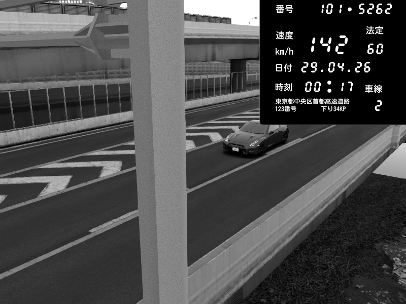 | 2026/04/29 00:17 | C1内回り 竹橋JCT | 142 / 60 km/h | Nissan GT-R NISMO 2017 | CAPTURE |