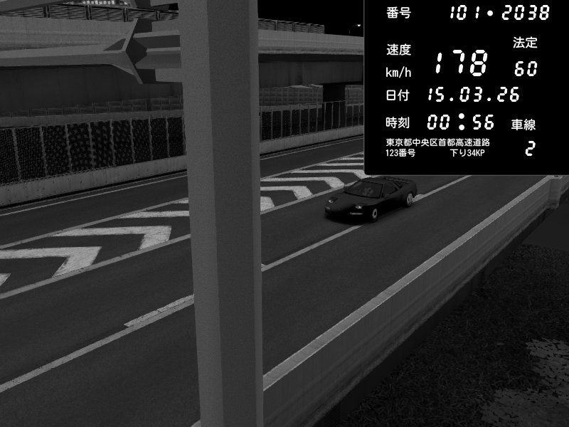| 2026/03/15 00:56 | C1内回り 竹橋JCT | 178 / 60 km/h | Honda NSX [NA1] PVLSX | CAPTURE |