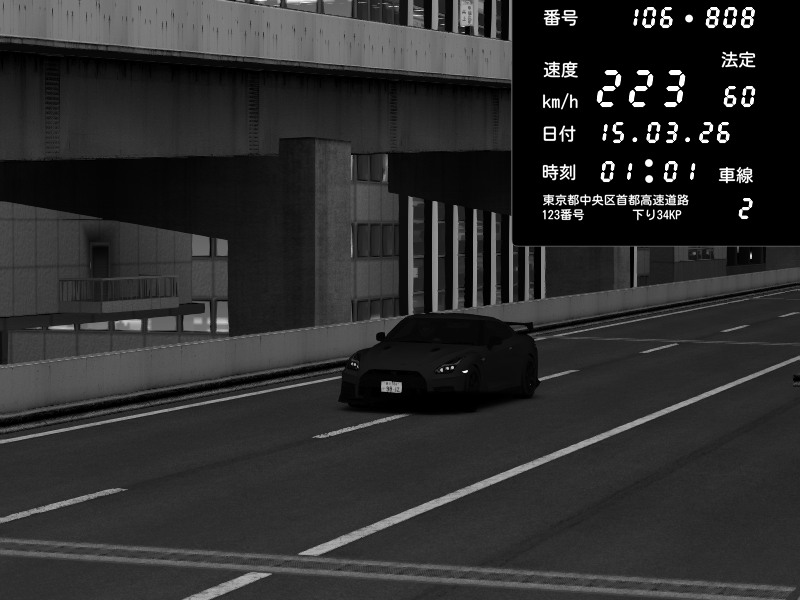 | 2026/03/15 01:01 | 9号下り 木場 | 223 / 60 km/h | Nissan GT-R NISMO 2017 | CAPTURE |