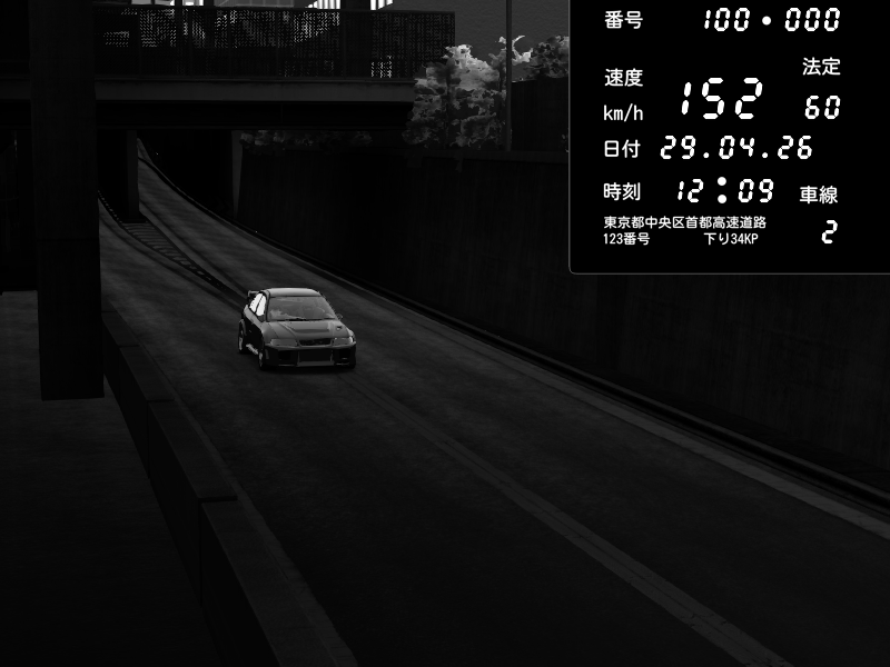 | 2026/04/29 12:20 | C1外回り 京橋 | 250 / 60 km/h | Mitsubishi Lancer Evolution V Wangan Spec | CAPTURE |