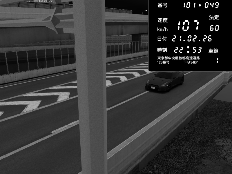 | 2026/02/21 22:53 | C1内回り 竹橋JCT | 107 / 60 km/h | Nissan GT-R NISMO 2017 | CAPTURE |