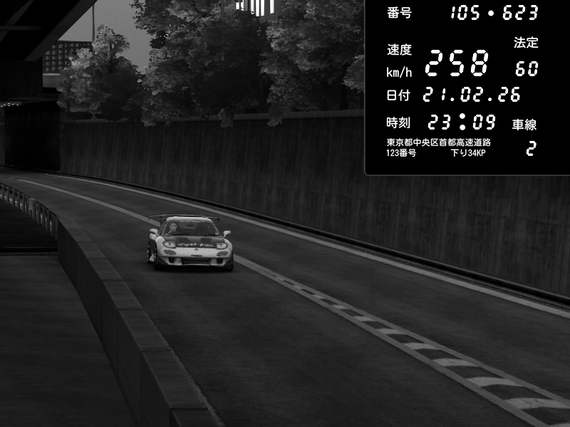 | 2026/02/21 23:09 | C1外回り 京橋 | 258 / 60 km/h | Mazda RX-7 FD3S RE Amemiya | CAPTURE |