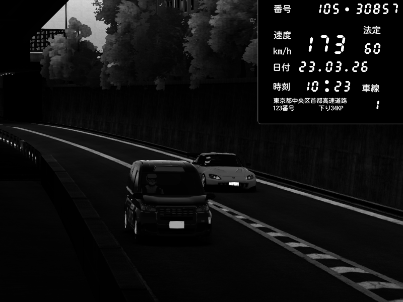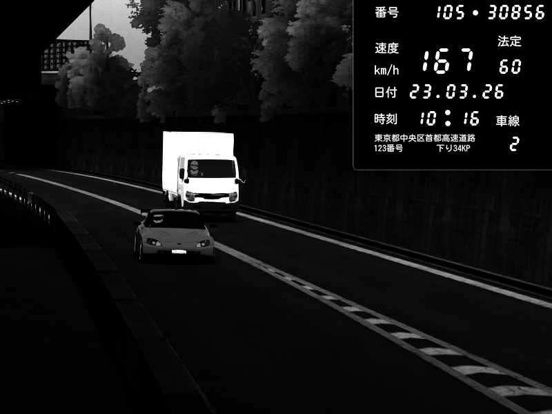 | 2026/03/23 10:16 | C1外回り 新富町 | 125 / 60 km/h | Honda S2000 (AP2 - Legendary) | CAPTURE |