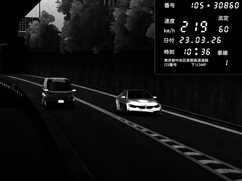 | 2026/03/23 10:36 | C1外回り 新富町 | 113 / 60 km/h | BMW M4 crash.Sp Varis Widebody | CAPTURE |