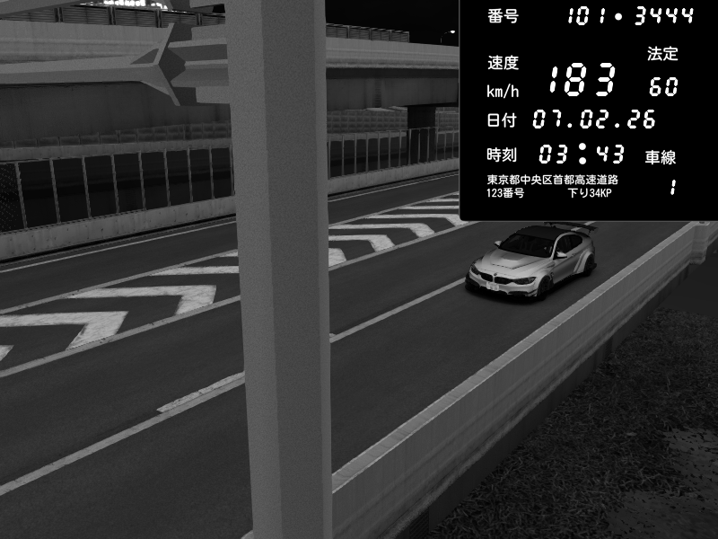 | 2026/02/07 03:42 | C1内回り 京橋 | 123 / 60 km/h | BMW M4 crash.Sp Varis Widebody | CAPTURE |