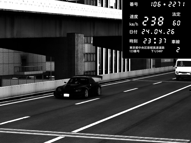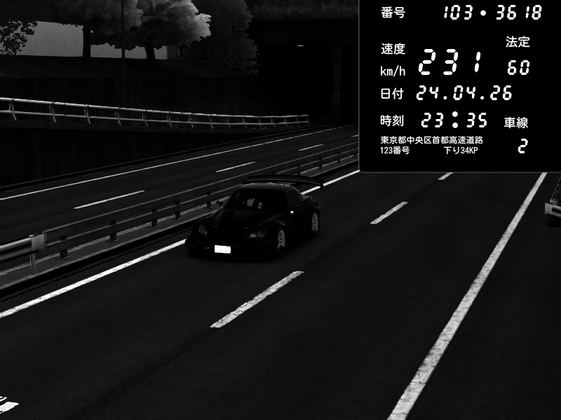 | 2026/04/24 23:35 | C1内回り 銀座 | 231 / 60 km/h | Honda S2000 Turbo GT1 Amuse (AP1) | CAPTURE |