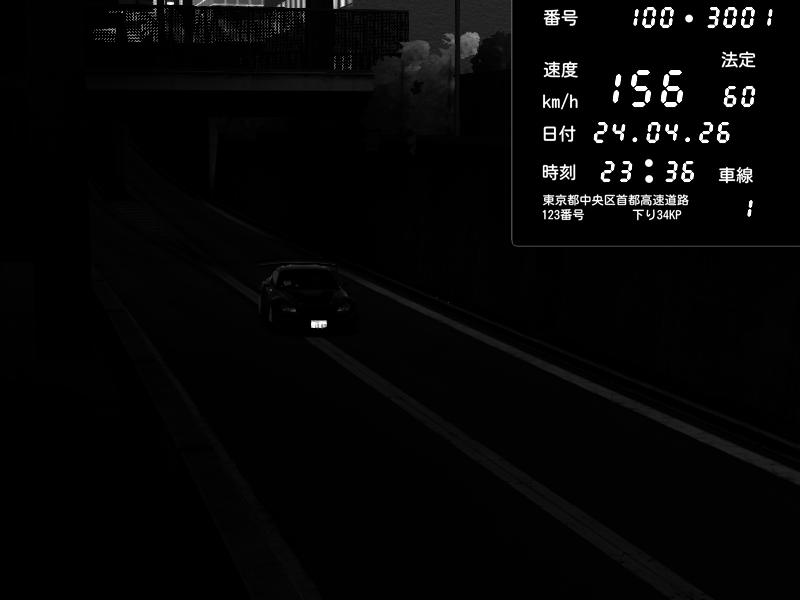 | 2026/04/24 23:36 | C1内回り 京橋 | 156 / 60 km/h | Honda S2000 Turbo GT1 Amuse (AP1) | CAPTURE |