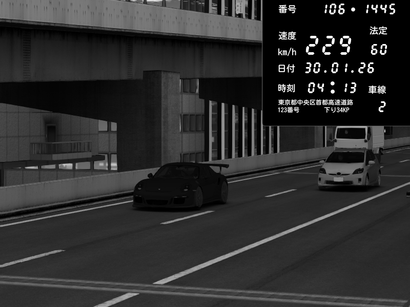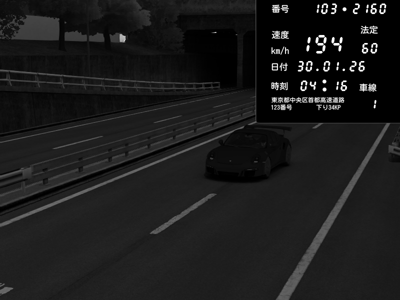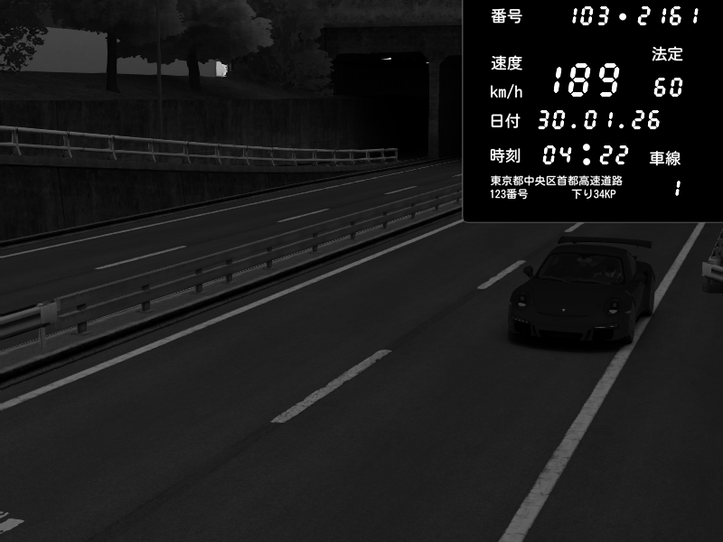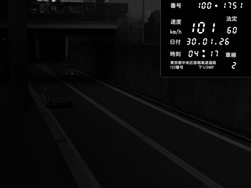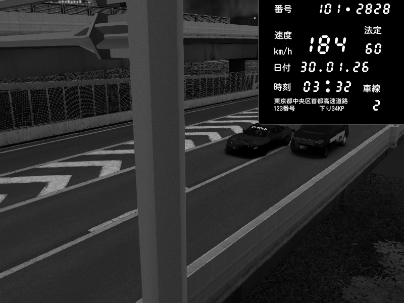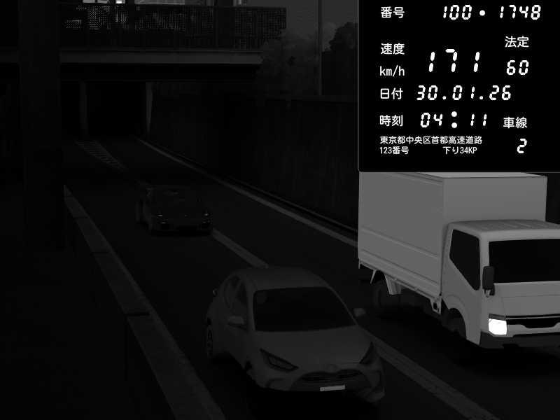 | 2026/01/30 03:32 | C1内回り 竹橋JCT | 184 / 60 km/h | Pit Road M - Mitsubishi GTO Twin Turbo | CAPTURE |