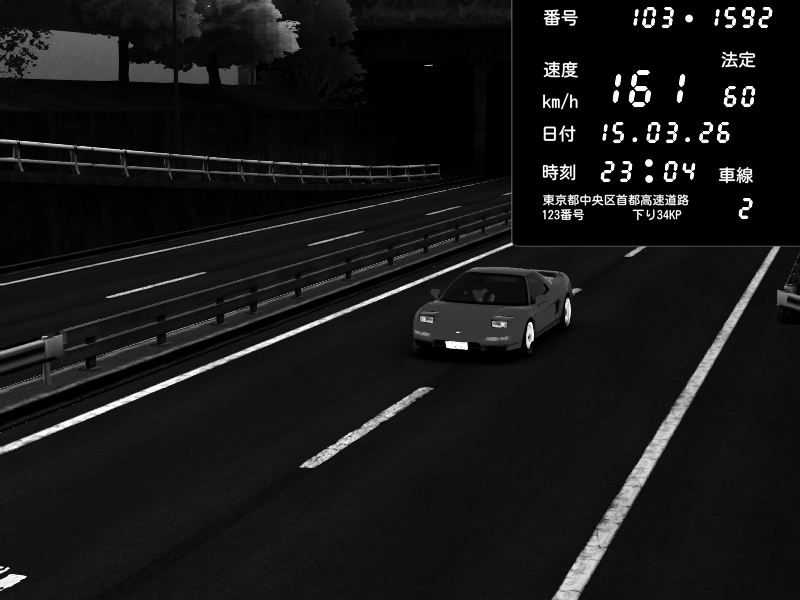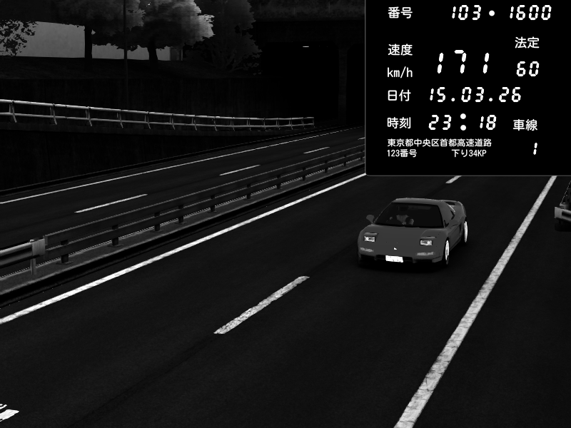 | 2026/03/15 23:18 | C1内回り 銀座 | 171 / 60 km/h | Honda NSX [NA1] PVLSX | CAPTURE |