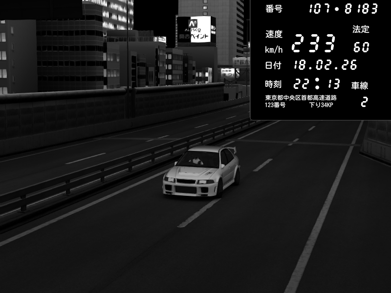 | 2026/02/18 22:13 | C1外回り 芝公園 | 233 / 60 km/h | Mitsubishi Lancer Evolution V Wangan Spec | CAPTURE |