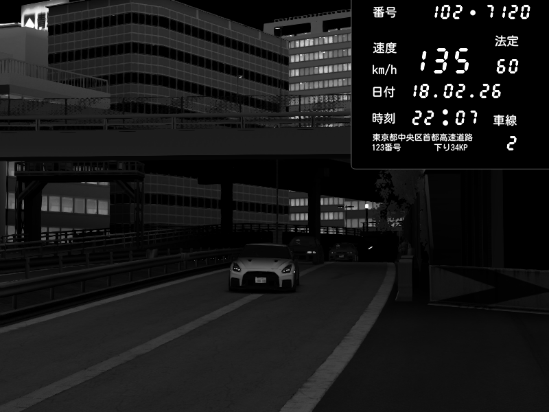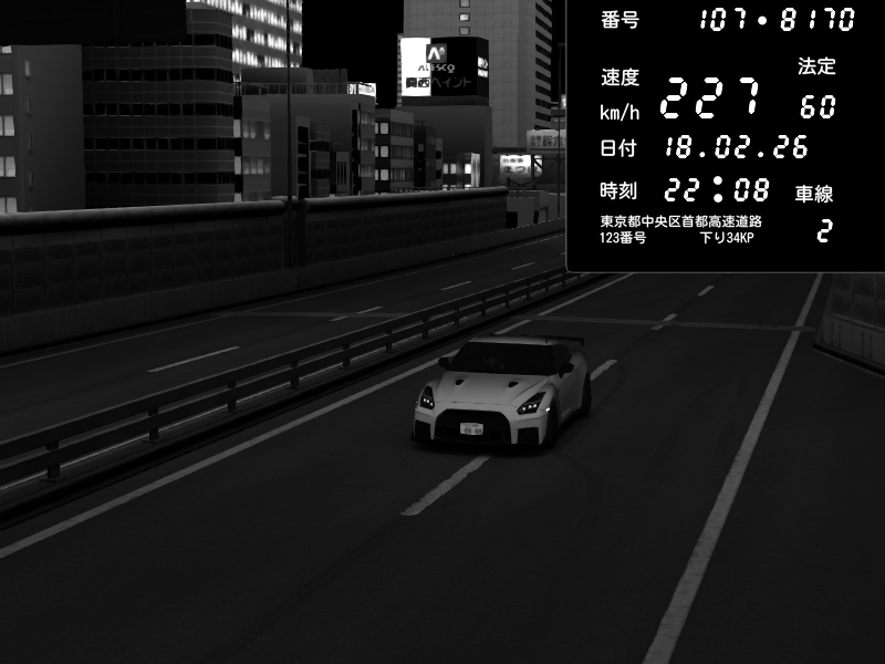 | 2026/02/18 22:03 | C1外回り 芝公園 | 228 / 60 km/h | Nissan GT-R NISMO 2017 | CAPTURE |