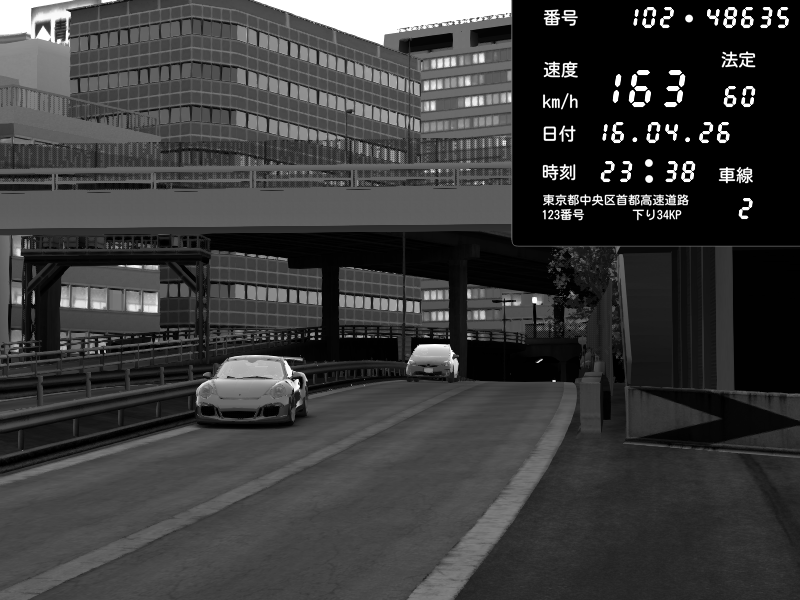 | 2026/04/16 23:38 | C1外回り 新富町 | 163 / 60 km/h | Porsche 911 GT3 RS | CAPTURE |