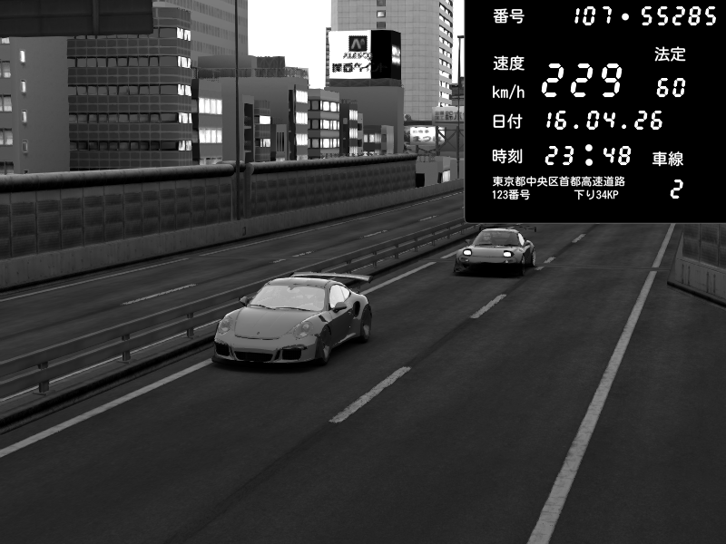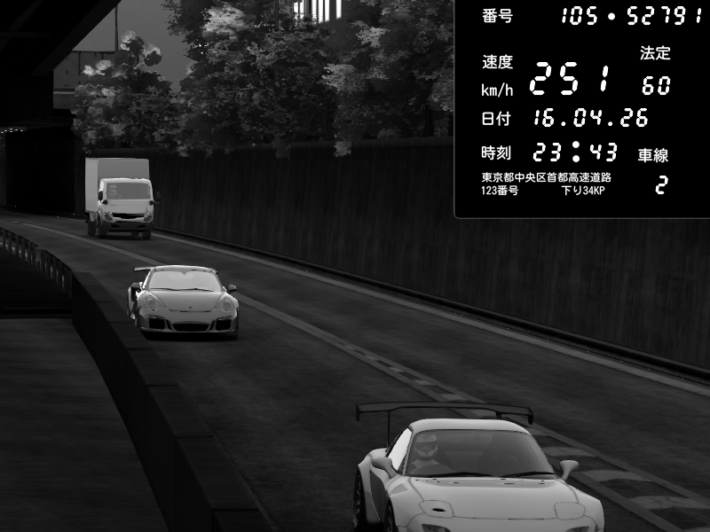 | 2026/04/16 23:38 | C1外回り 京橋 | 253 / 60 km/h | Porsche 911 GT3 RS | CAPTURE |