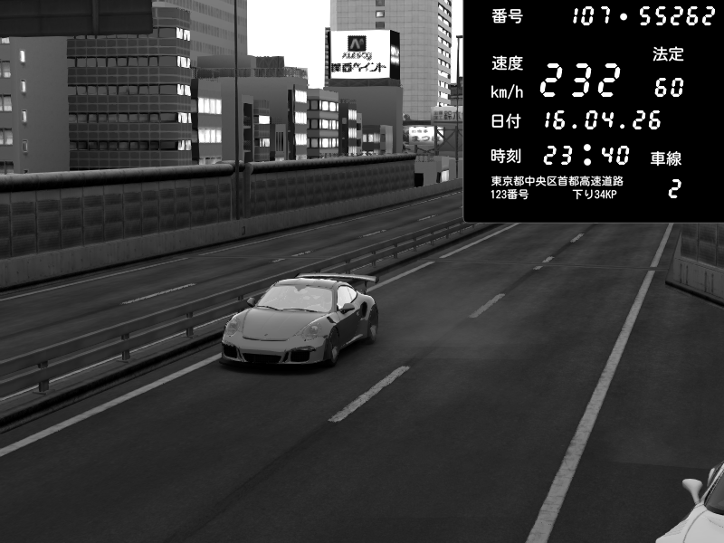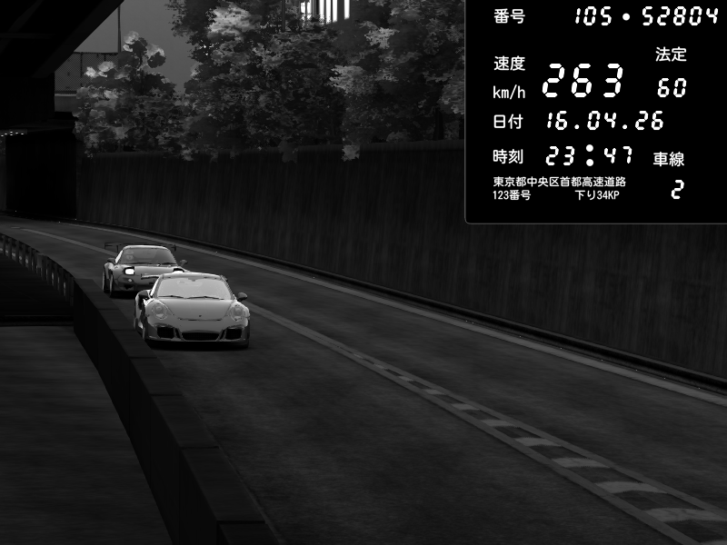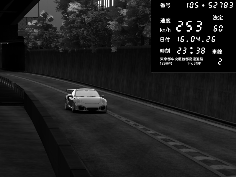 | 2026/04/16 23:43 | C1外回り 新富町 | 183 / 60 km/h | Porsche 911 GT3 RS | CAPTURE |