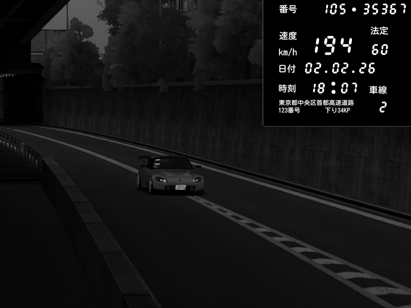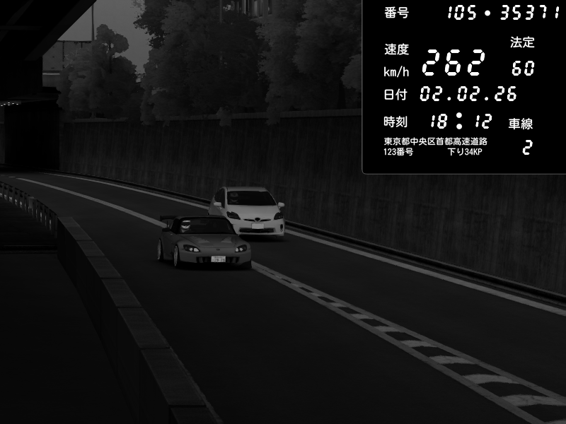 | 2026/02/02 18:07 | C1外回り 新富町 | 101 / 60 km/h | Honda S2000 (AP2 - Legendary) | CAPTURE |