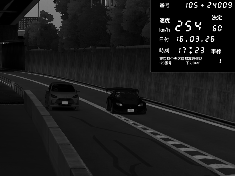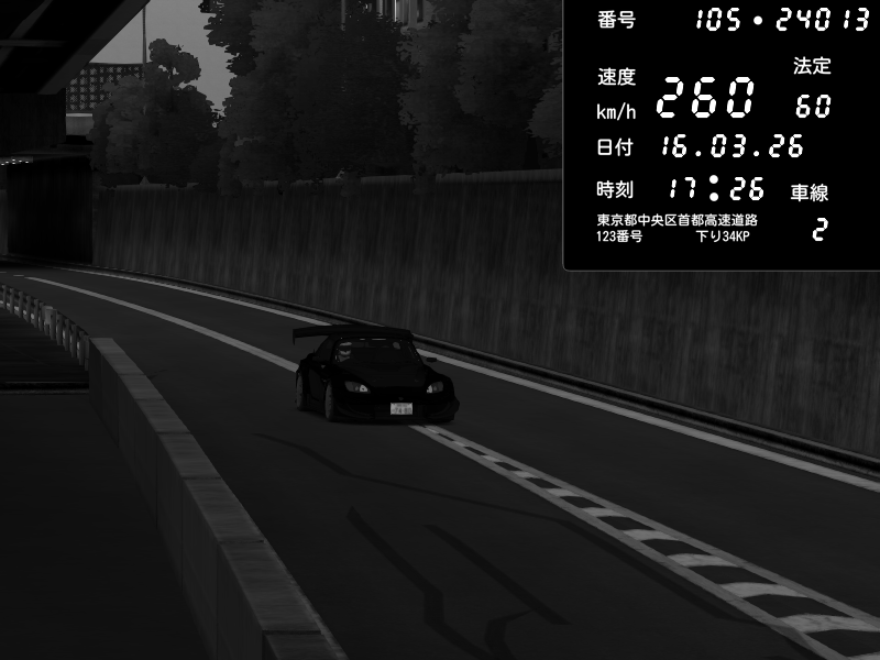 | 2026/03/16 17:27 | C1外回り 芝公園 | 243 / 60 km/h | Honda S2000 Turbo GT1 Amuse (AP1) | CAPTURE |