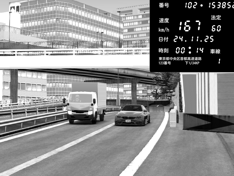 | 2025/11/24 00:10 | C1外回り 京橋 | 290 / 60 km/h | BMW M4 crash.Sp Varis Widebody | CAPTURE |