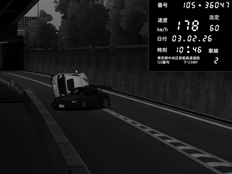 | 2026/02/03 10:46 | C1外回り 京橋 | 178 / 60 km/h | Honda S2000 Turbo GT1 Amuse (AP1) | CAPTURE |