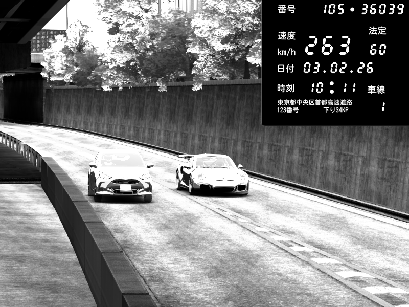 | 2026/02/03 10:11 | C1外回り 京橋 | 263 / 60 km/h | Porsche 911 GT3 RS | CAPTURE |