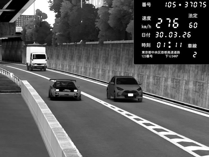 | 2026/03/30 01:19 | C1外回り 京橋 | 276 / 60 km/h | Mazda RX-7 FD3S FEED Afflux GT3 | CAPTURE |