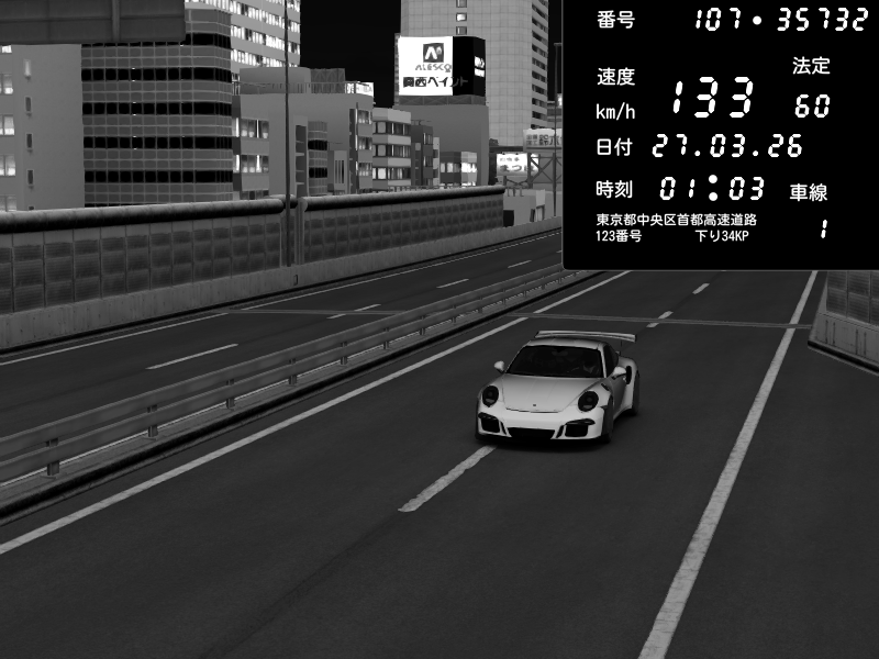 | 2026/03/27 01:01 | C1外回り 京橋 | 187 / 60 km/h | Porsche 911 GT3 RS | CAPTURE |