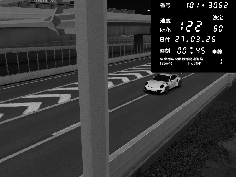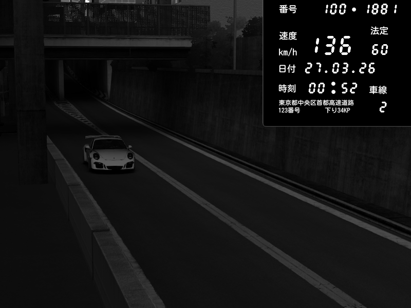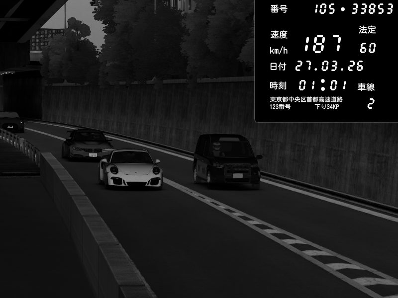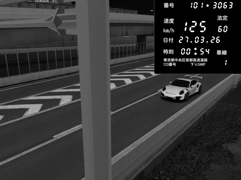 | 2026/03/27 00:57 | 4号下り 代々木 | 119 / 60 km/h | Porsche 911 GT3 RS | CAPTURE |