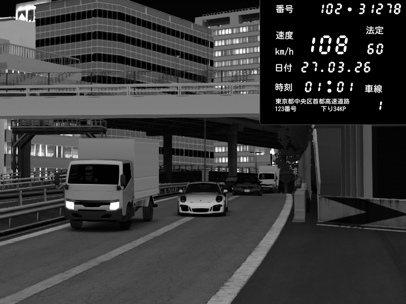 | 2026/03/27 01:01 | C1外回り 新富町 | 108 / 60 km/h | Porsche 911 GT3 RS | CAPTURE |