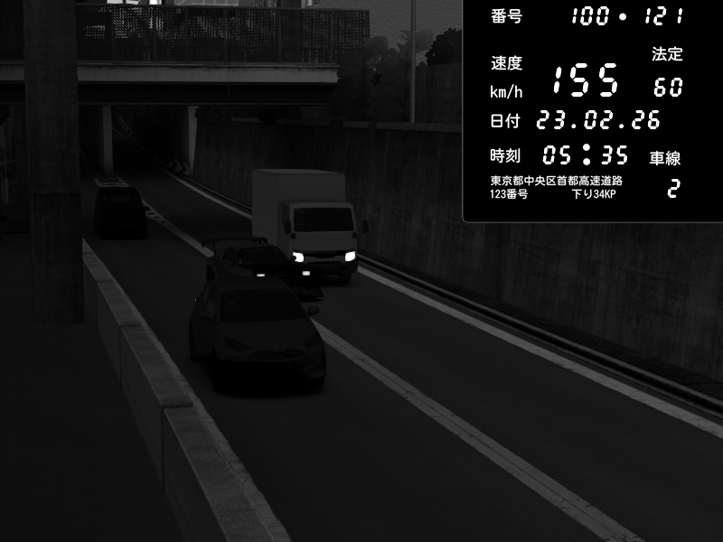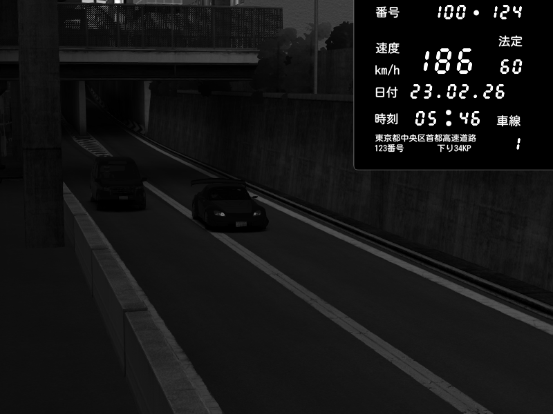 | 2026/02/23 05:46 | C1内回り 京橋 | 186 / 60 km/h | Honda S2000 Turbo GT1 Amuse (AP1) | CAPTURE |