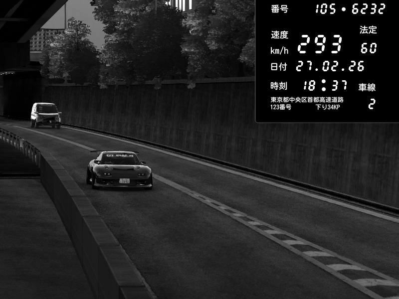 | 2026/02/27 18:37 | C1外回り 京橋 | 293 / 60 km/h | Pit Road M - Mitsubishi GTO Twin Turbo | CAPTURE |