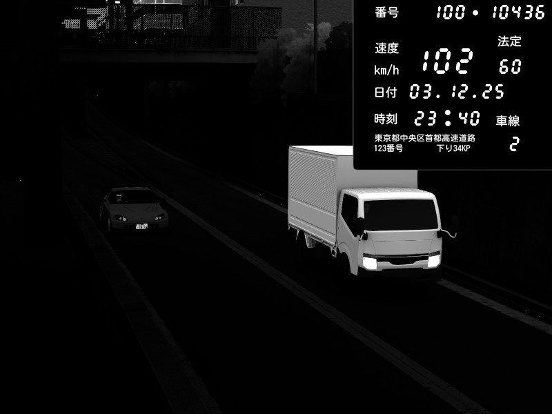 | 2025/12/03 23:40 | C1内回り 京橋 | 102 / 60 km/h | Honda S2000 (AP2 - Legendary) | CAPTURE |