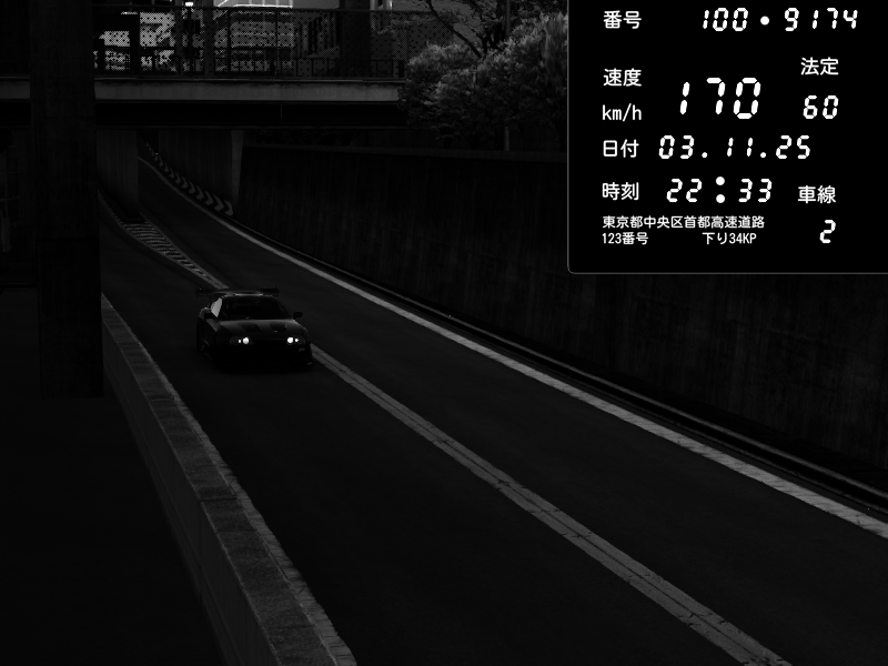 | 2025/11/03 22:33 | C1内回り 京橋 | 170 / 60 km/h | Toyota Supra MKIV Time Attack | CAPTURE |