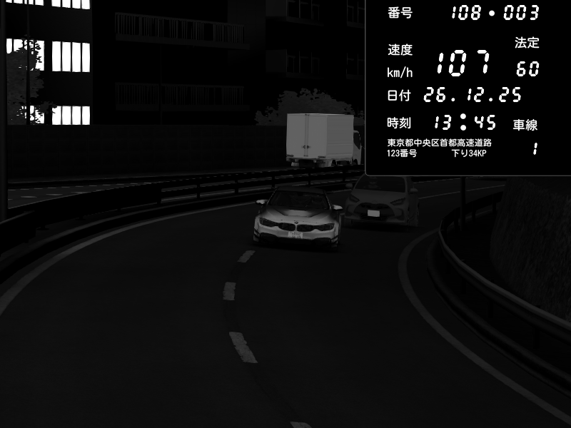 | 2025/12/26 13:45 | 4号下り 代々木 | 107 / 60 km/h | BMW M4 crash.Sp Varis Widebody | CAPTURE |