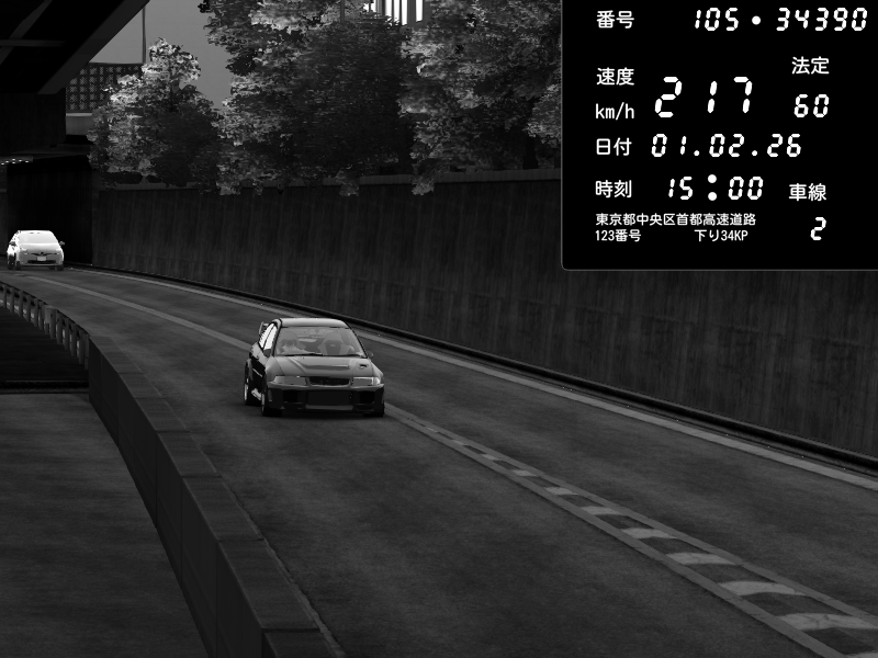 | 2026/02/01 15:00 | C1外回り 京橋 | 217 / 60 km/h | Mitsubishi Lancer Evolution V Wangan Spec | CAPTURE |