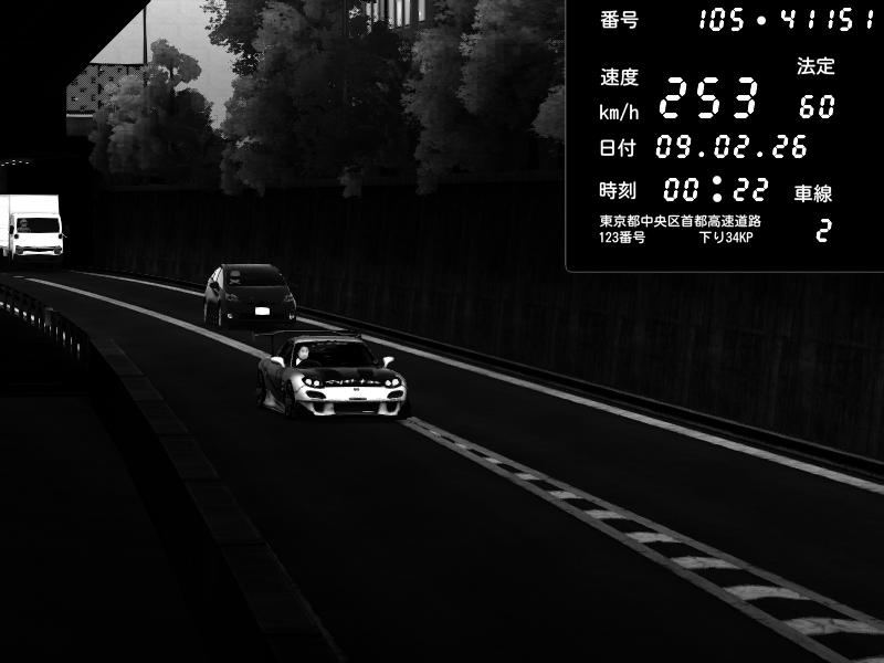 | 2026/02/09 00:22 | C1外回り 新富町 | 128 / 60 km/h | Mazda RX-7 FD3S RE Amemiya | CAPTURE |