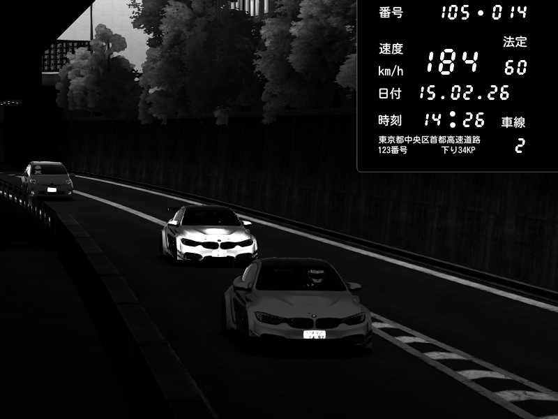 | 2026/02/15 14:26 | C1外回り 京橋 | 184 / 60 km/h | BMW M4 crash.Sp Varis Widebody | CAPTURE |