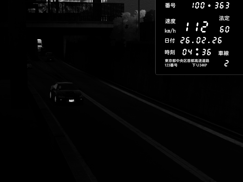 | 2026/02/26 04:45 | 4号下り 代々木 | 149 / 60 km/h | Nissan Skyline GT-R R34 Nismo Omori Factory S1 | CAPTURE |