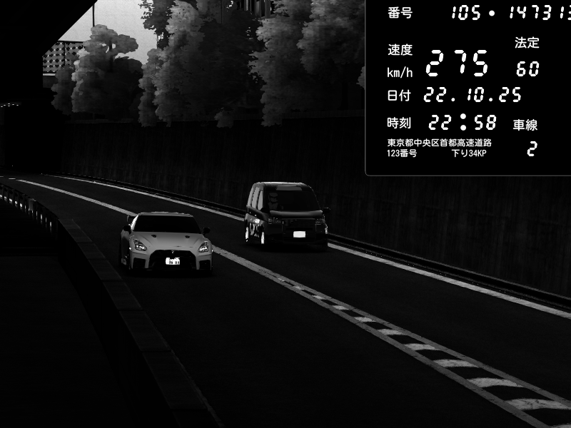 2025/10/22 23:02 | C1外回り 京橋 | 274 / 60 km/h | Nissan GT-R NISMO 2017 | CAPTURE |