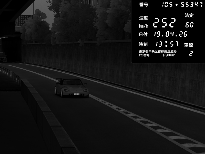 | 2026/04/19 13:57 | C1外回り 京橋 | 252 / 60 km/h | Honda S2000 (AP2 - Legendary) | CAPTURE |
