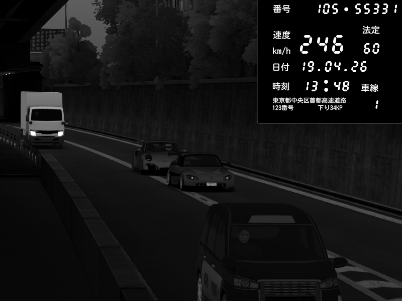 | 2026/04/19 13:48 | C1外回り 新富町 | 175 / 60 km/h | Honda S2000 (AP2 - Legendary) | CAPTURE |