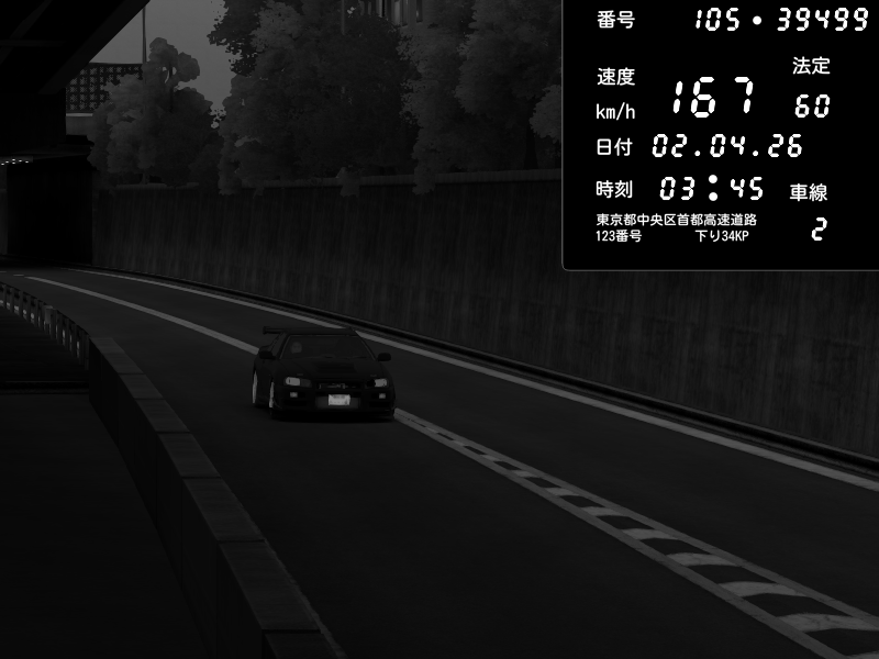 | 2026/04/02 03:45 | C1外回り 新富町 | 109 / 60 km/h | Nissan Skyline GT-R R34 Nismo Omori Factory S1 | CAPTURE |